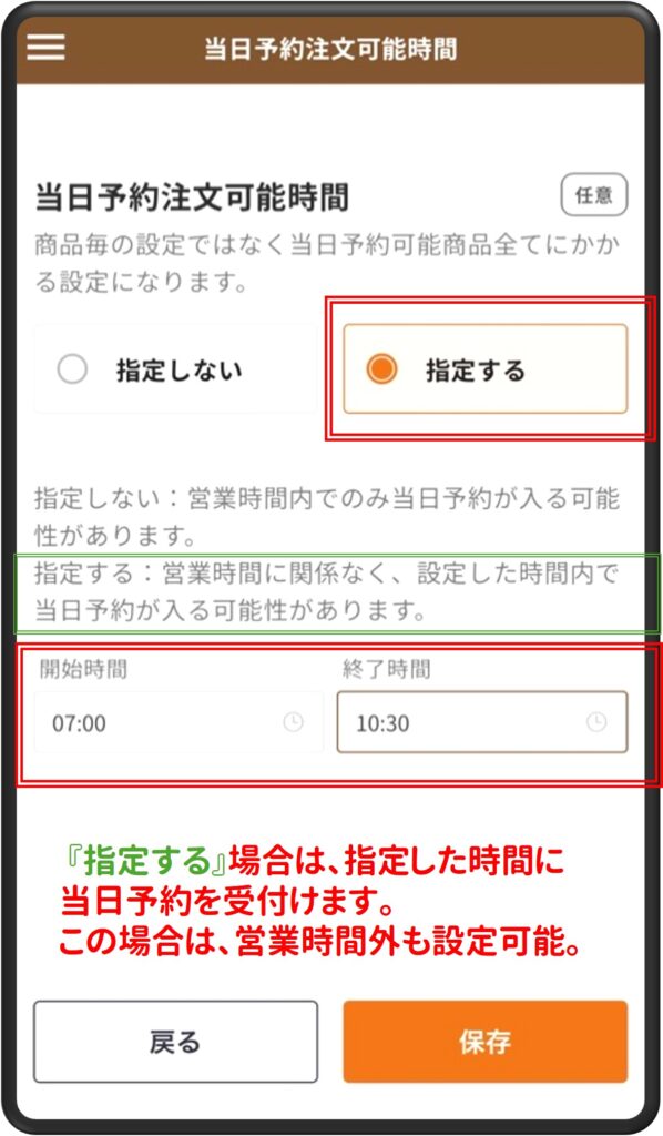営業時間前も当日予約受付可能に!売上チャンスを逃しません 2025 9/11 リニューアル情報 『営業時間前の仕込み中にも当日予約を受付けたいけど、設定できない・・』そんなお悩みを解決しました 営業時間外の当日予約受付にも対応できるようになりました。 売上アップにつながる新たなチャンスを広げます。 リニューアル情報 関連内容 過去の売上グラフが全て見られるように! 商品登録で0円設定が可能に! 全体オプションで0円設定が可能に!